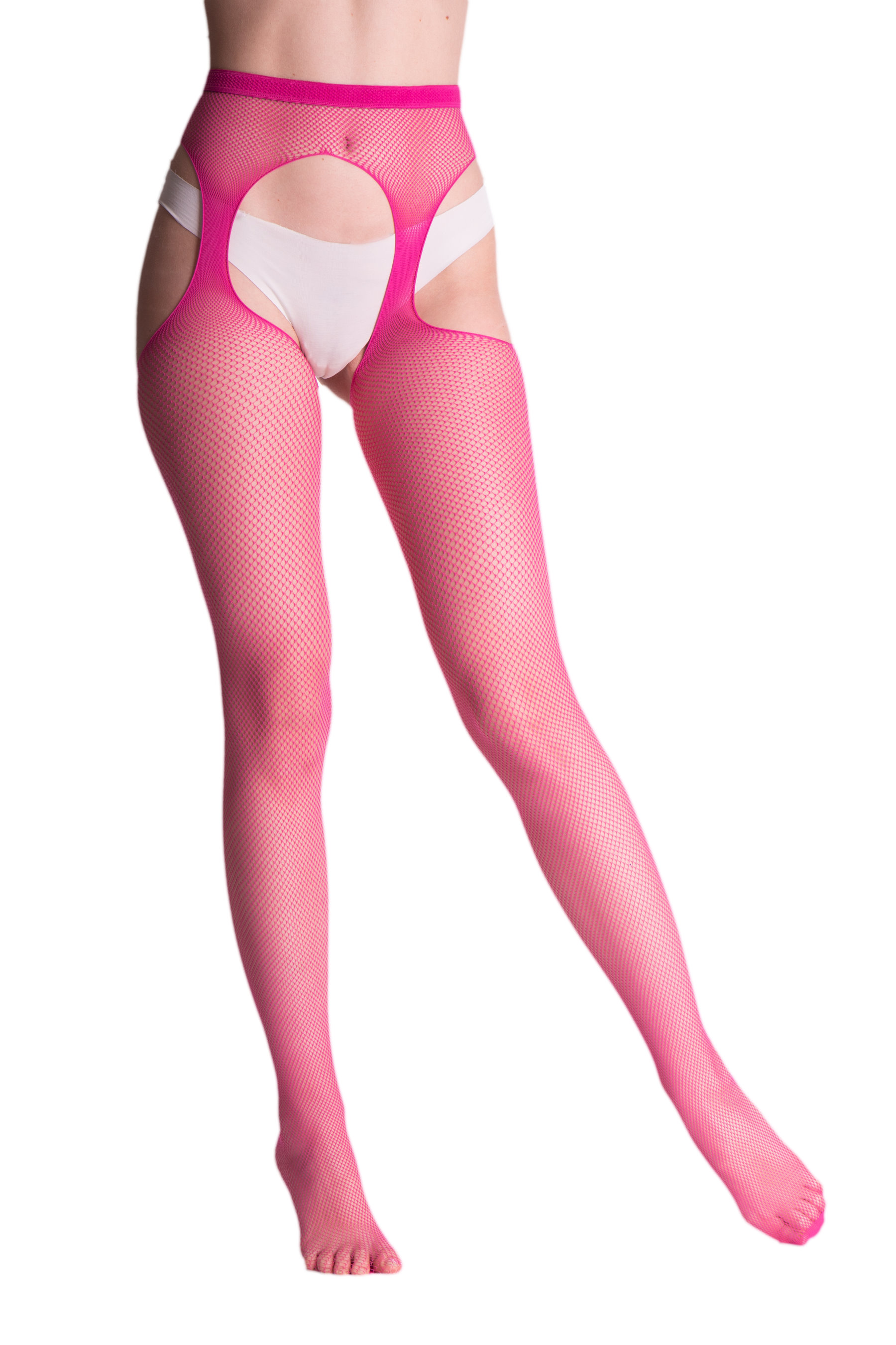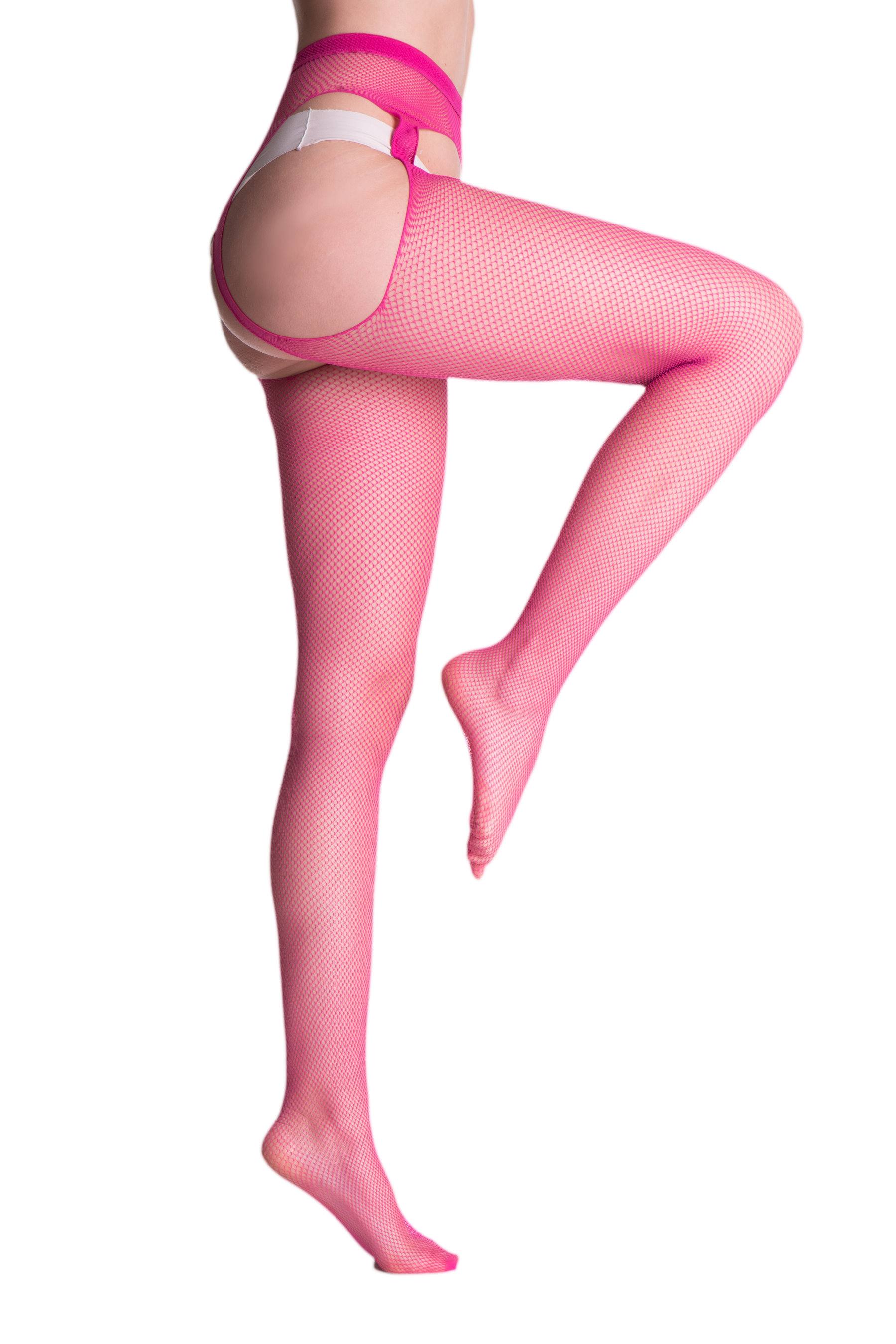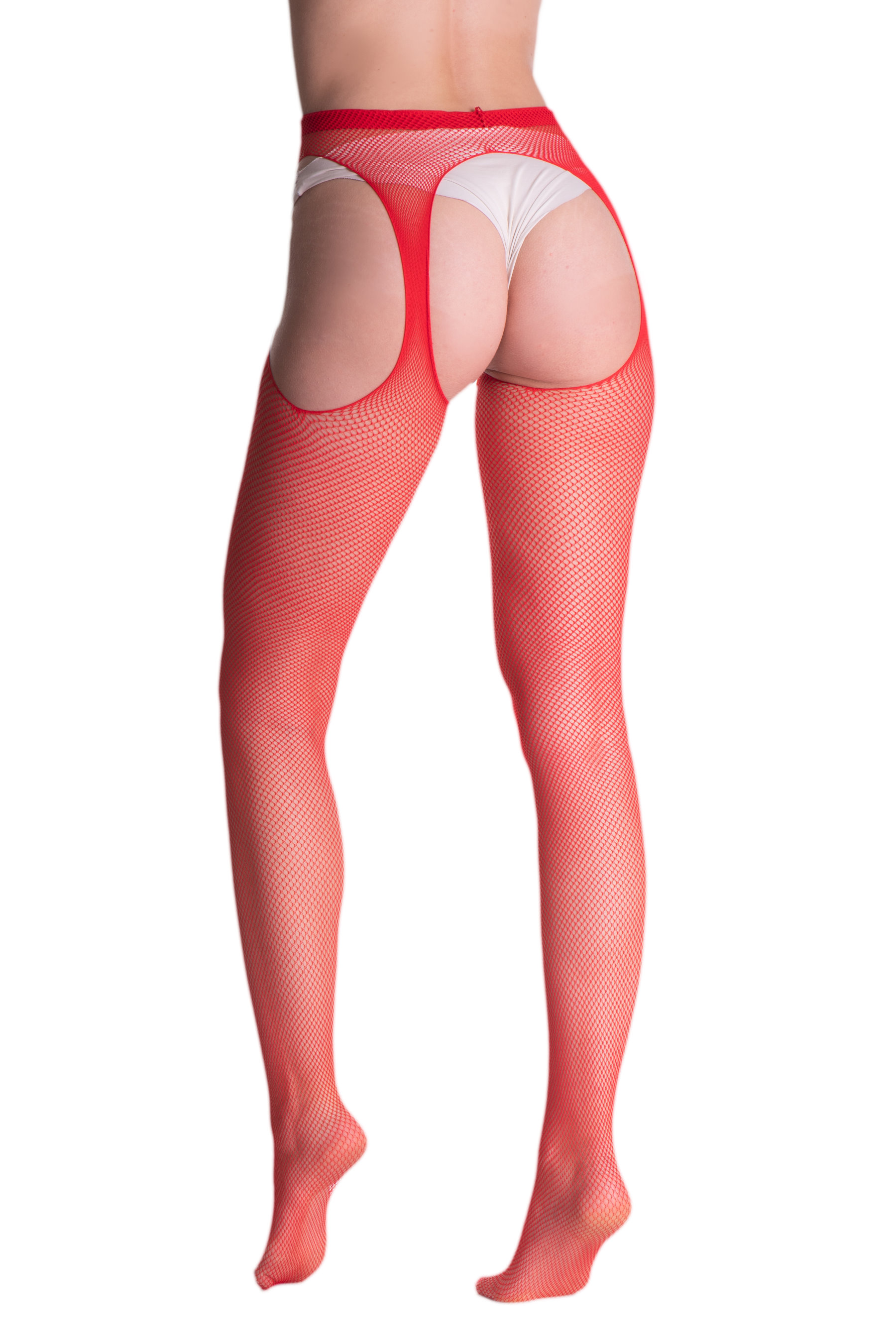 Strapsstrumpfhose aus weichem Netz, feinmaschig, mit dezent verstärkter Spitze. So bequem und einfach zu tragen wie eine gewöhnliche Strumpfhose und so verführerisch wie Strapsstrümpfe!