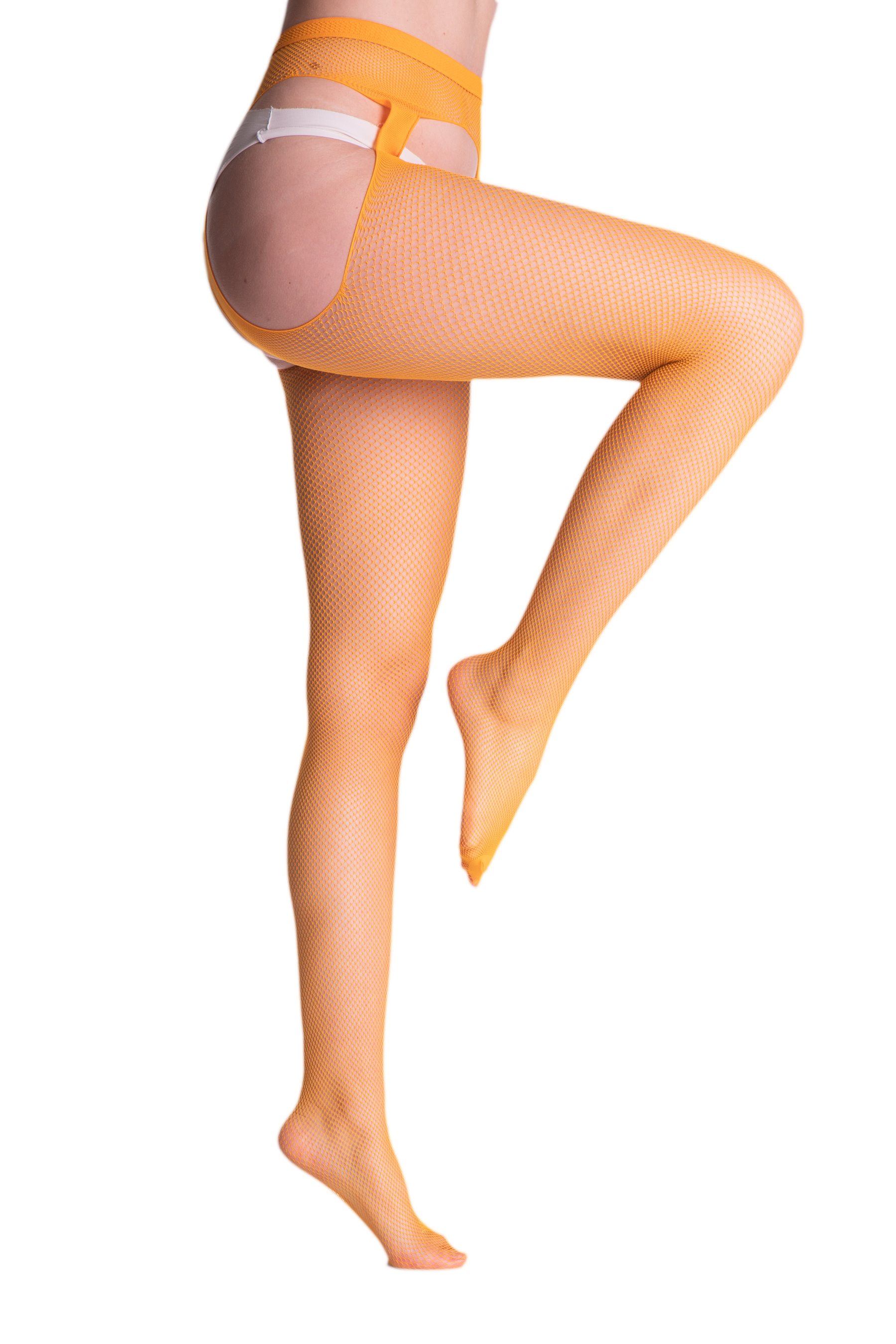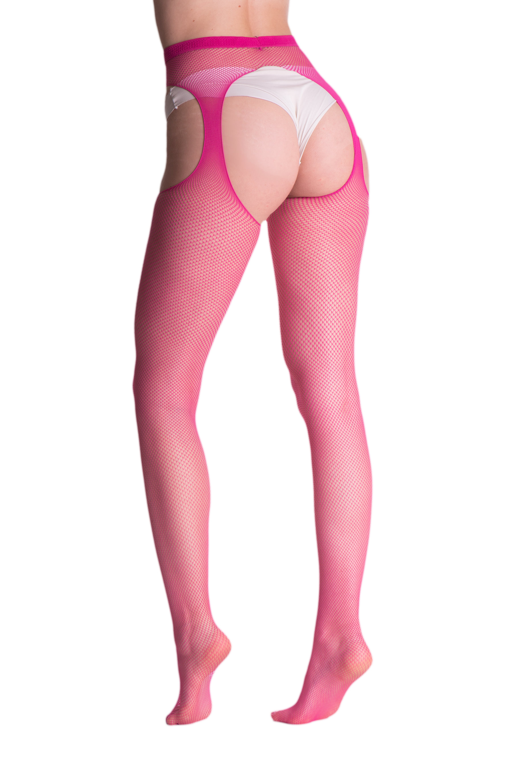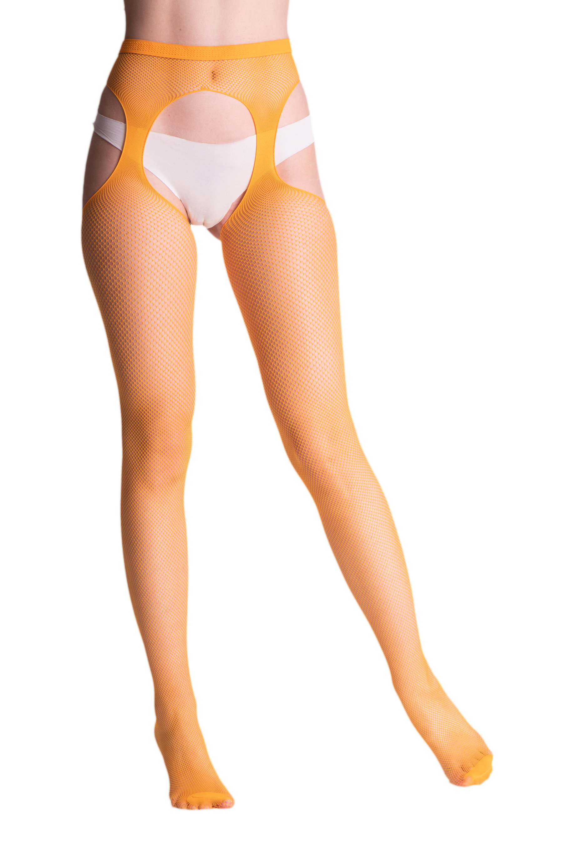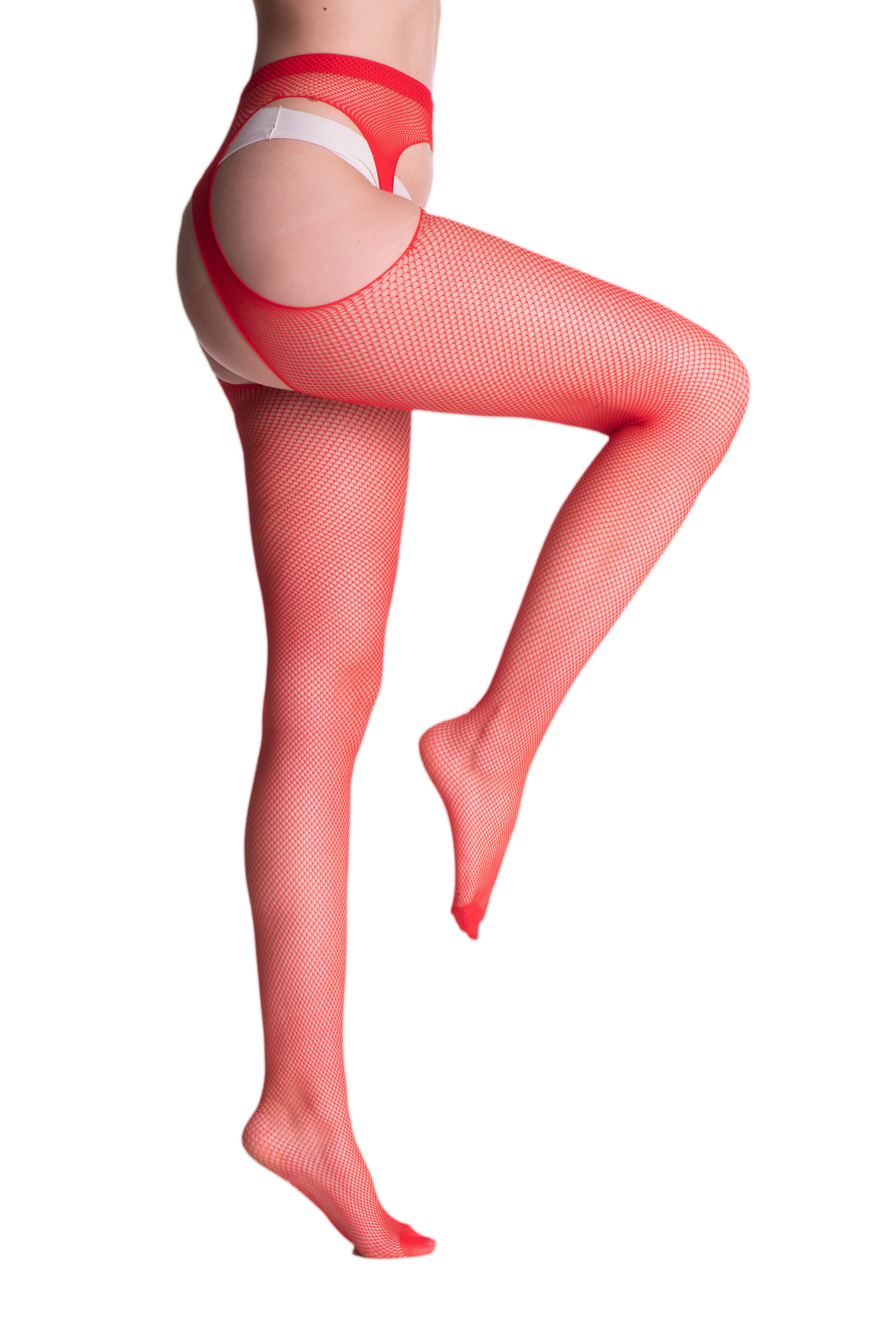 Strapsstrumpfhose aus weichem Netz, feinmaschig, mit dezent verstärkter Spitze. So bequem und einfach zu tragen wie eine gewöhnliche Strumpfhose und so verführerisch wie Strapsstrümpfe!
